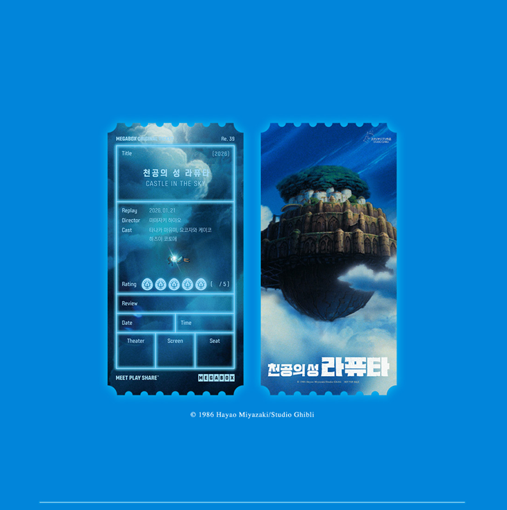 넥스트엔터테인먼트월드에서 대원미디어와 업무 협약(MOU)을 체결하고 2025년 6월 25일 애니메이션 영화 <바람계곡의 나우시카>를 시작으로 애니메이션 영화 <모노노케 히메>를 거쳐 이번에 애니메이션 <천공의 성 라퓨타>를 재개봉하게 되었습니다.