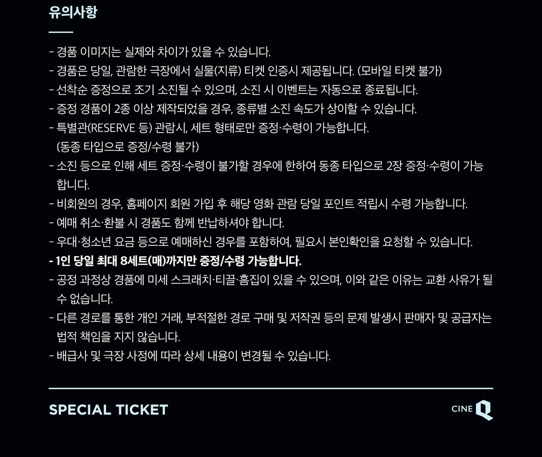 씨네큐(씨네Q, CINE Q) 1주 차 특전은 '스페셜 티켓'입니다.