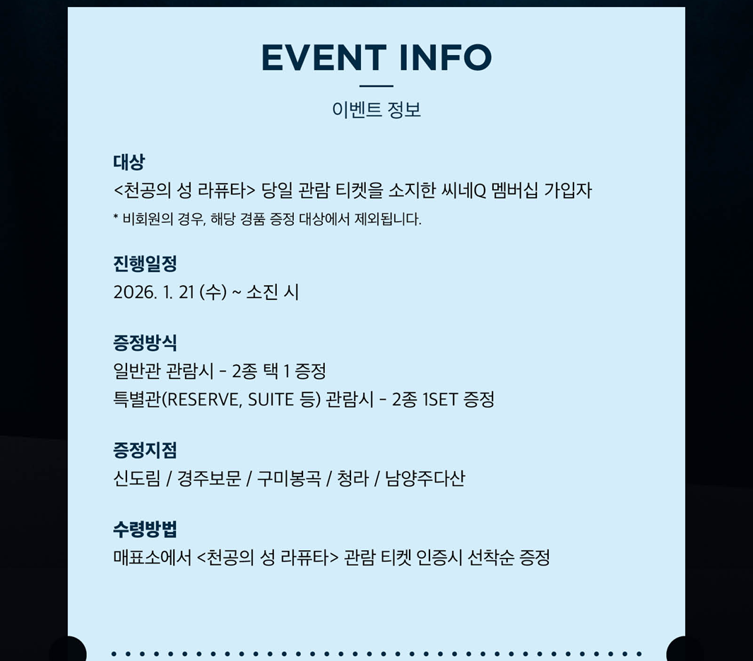 - 특별관(Reserve, Suite 등) 관람: 2종 1 세트 증정