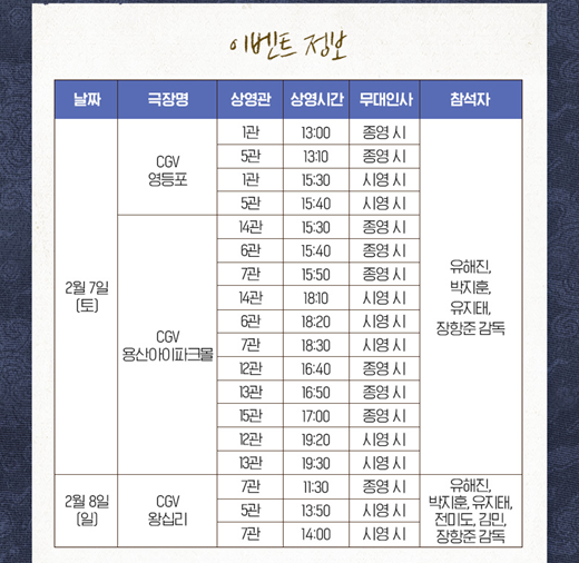 CGV 개봉주 주말 무대인사 - 7일(토) 영등포, 용산아이파크몰 / 8일(일) 왕십리
