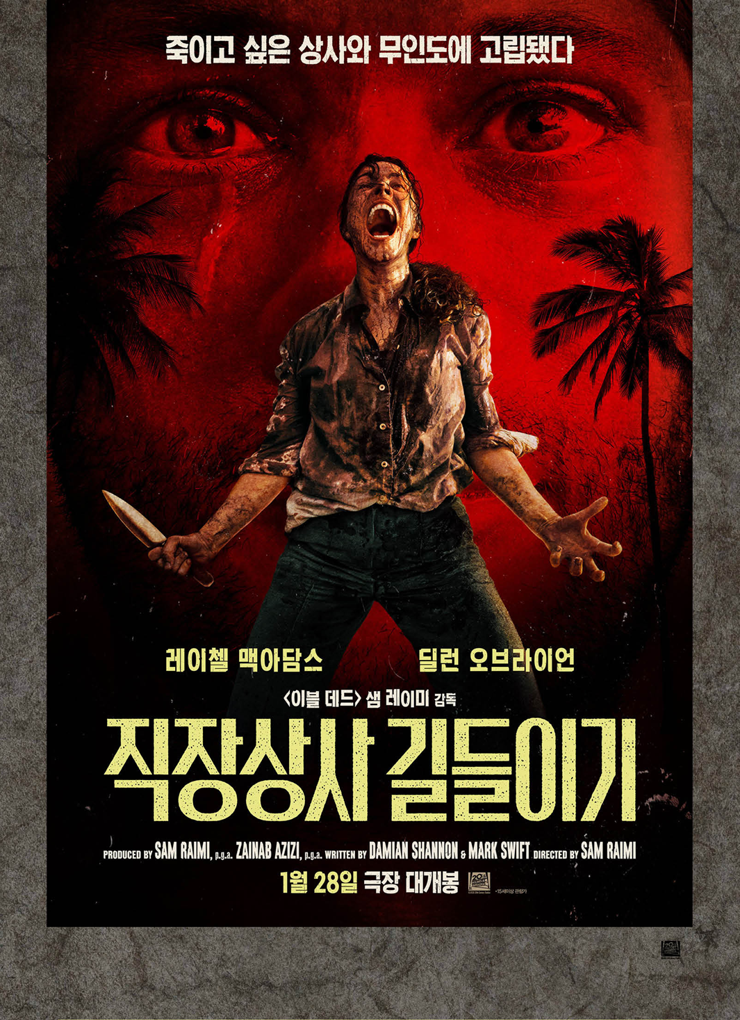 영화 <직장상사 길들이기>는 B급 공포 영화의 거장 샘 레이미 감독의 작품입니다. 제목으로 보면 무조건 코미디로 보이지만, 코미디가 아주 살짝 가미된 공포 영화라고 합니다. 직장에서 인정받지 못하고 있는 주인공 린다와 죽일 만큼 미운 상사 브래들리가 출장 도중에 비행기 추락 사고로 무인도에 고립되면서 벌어지는 이야기입니다.