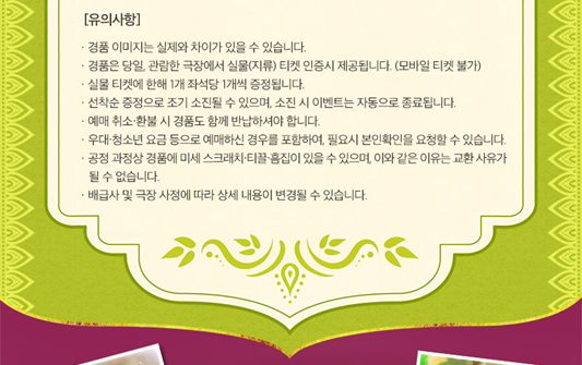 CGV 상영관 중 영등포타임스퀘어, 용산아이파크몰 지점은 '온라인 선착순 경품 신청 완료 고객'만 특전을 지급하니 미리 신청하셔서 특전을 수령하시길 바랍니다. 그 외의 이벤트 진행 상영관 지점은 '별도의 신청 없이' 관람 후에 특전을 수령하시면 됩니다.