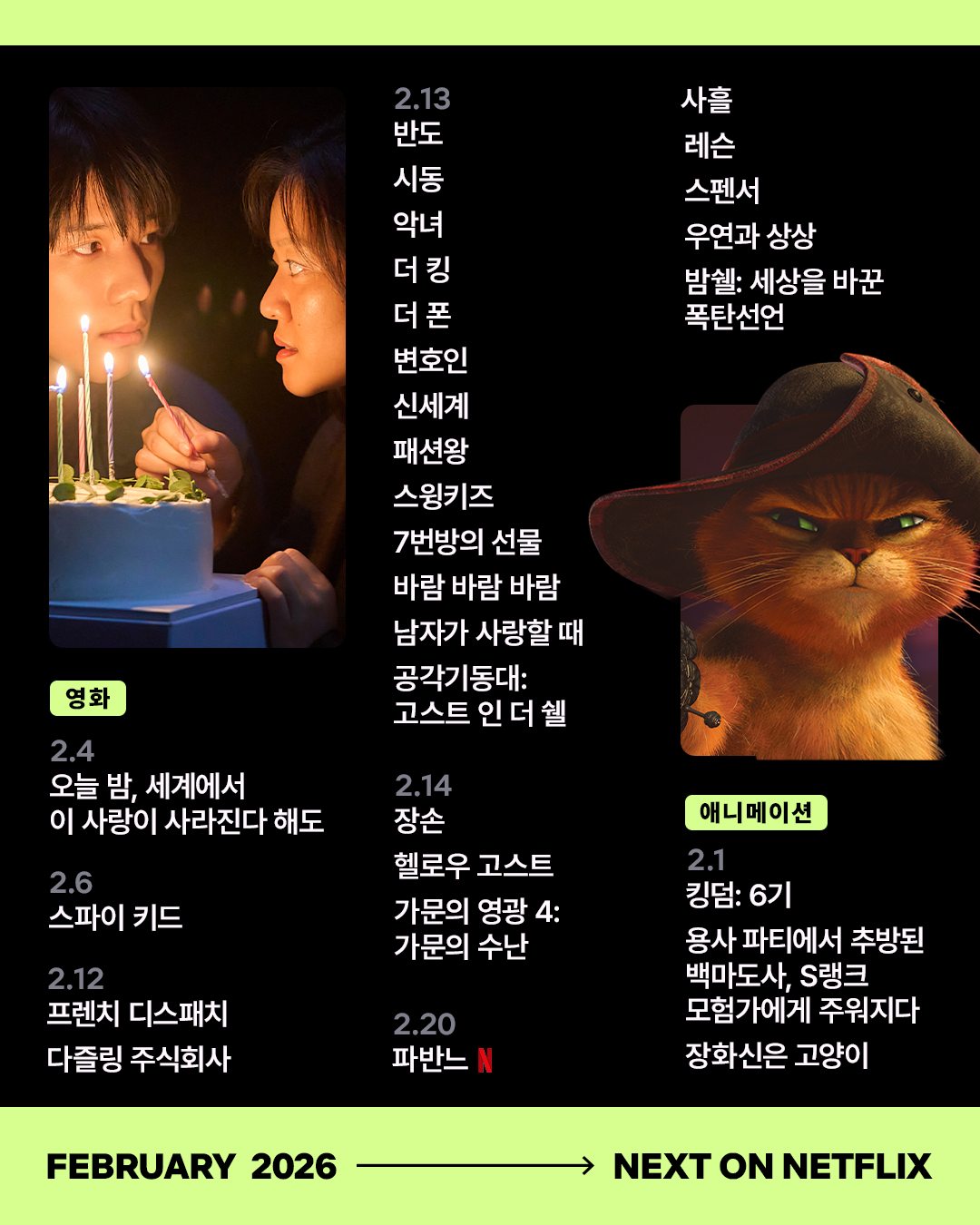 2026년 2월 "넷플릭스(NETFLIX)"에 공개되는 작품들