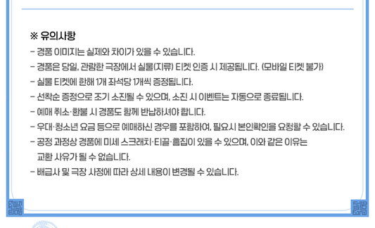 해당 상영회는 온라인 선착순 시스템 미대상입니다. 평소처럼 상영 후에 매표소에서 특전을 받으시면 됩니다.