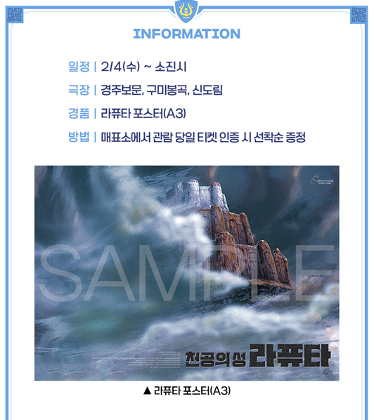 씨네큐(씨네Q, CINE Q) 3주 차 현장 증정 이벤트 - 라퓨타 포스터