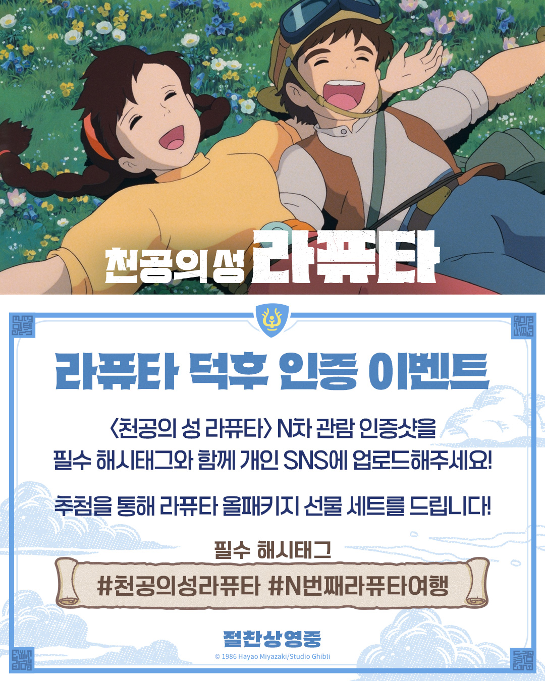 - 필수 해시태그: #천공의성라퓨타, #N번째라퓨타여행, @daewonmedia_movie