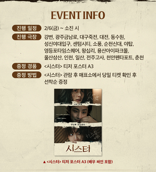 영화 <시스터> 2주 차 특전 목록