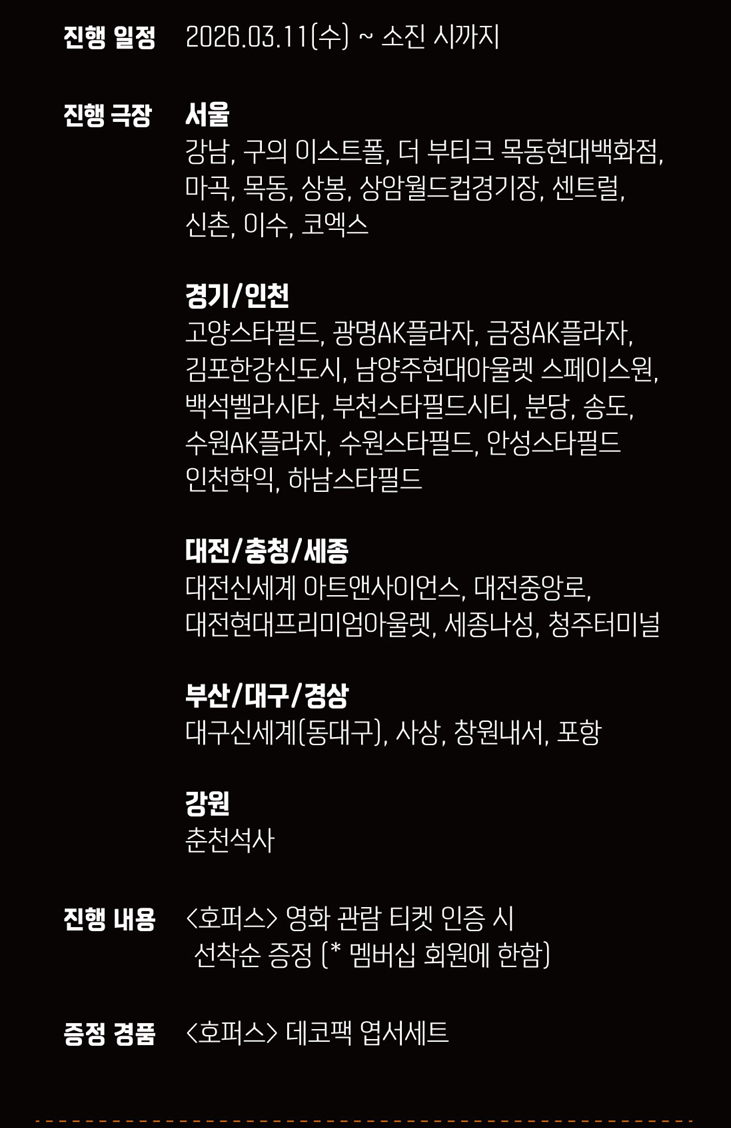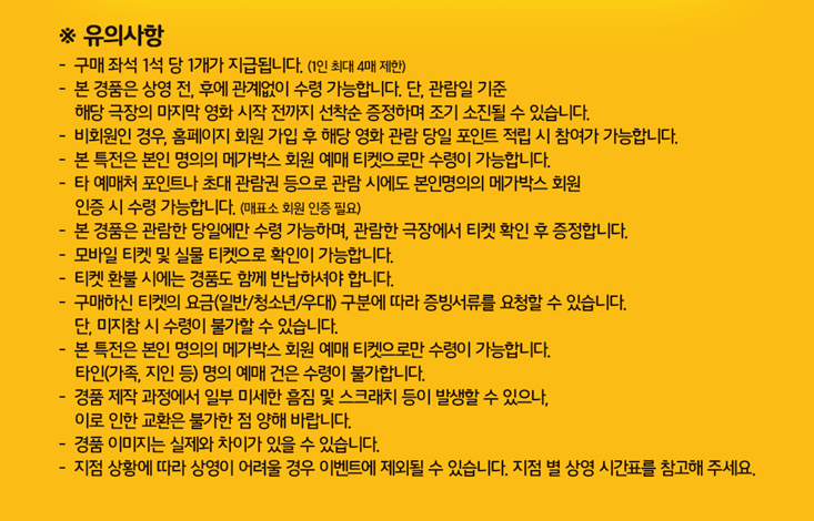 메가박스 구의이스트폴, 메가박스 코엑스 두 곳에서만 진행하고, 상영회차를 유의하시고 예매하셔서 받으시면 될 것 같습니다.