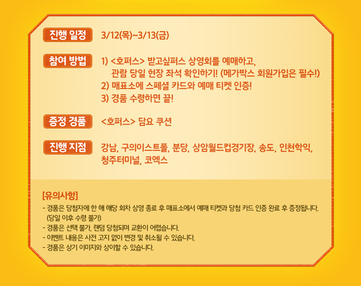 메가박스 받고싶퍼스 상영회 추첨으로 '호퍼스 담요 쿠션'을 증정합니다.
