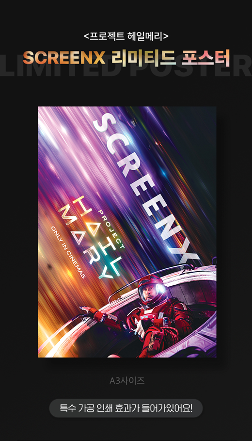 CGV SCREEN X 특전은 '스크린X 리미티드 포스터'입니다. A3 사이즈의 포스터이며, 특수 가공 인쇄 효과가 적용되어 있습니다.