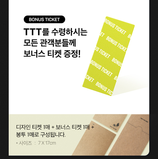 CGV 1주 차 특전은 'TTT(That's The Ticket)'입니다. 앞부분에 렌티큘러 효과가 적용되어 있습니다.