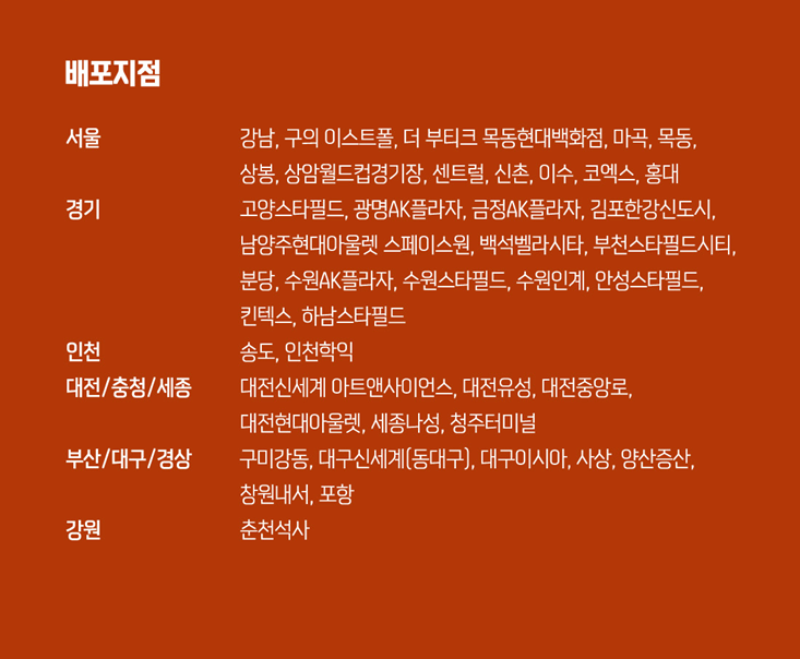대구, 영등포 타임스퀘어, 왕십리, 용산아이파크몰, 천안터미널, 판교 지점은 앞서 말씀드린 것처럼 미리 신청하셔야 특전을 받으실 수 있습니다.