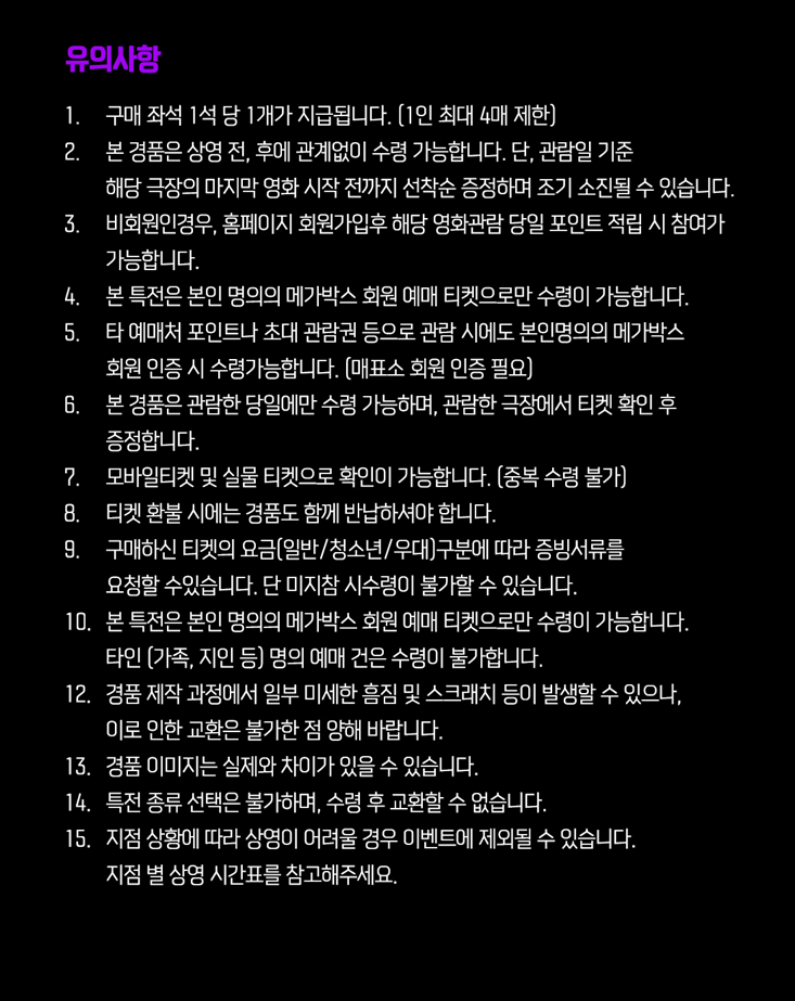 메가박스의 시그니처 특전입니다. 개인적인 취향에 맞습니다.