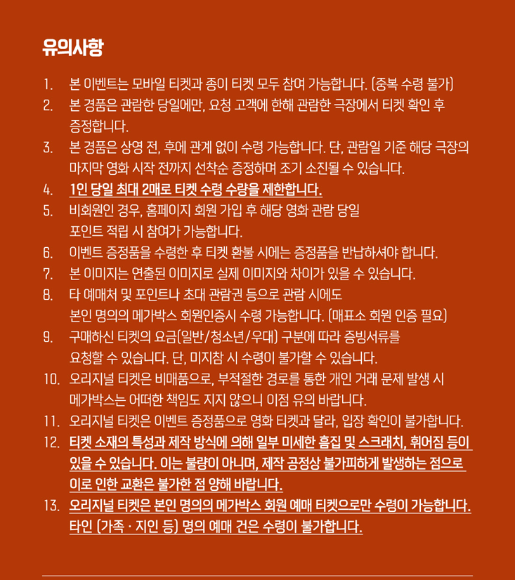 메가박스 1주 차 특전 - 오리지널 티켓
