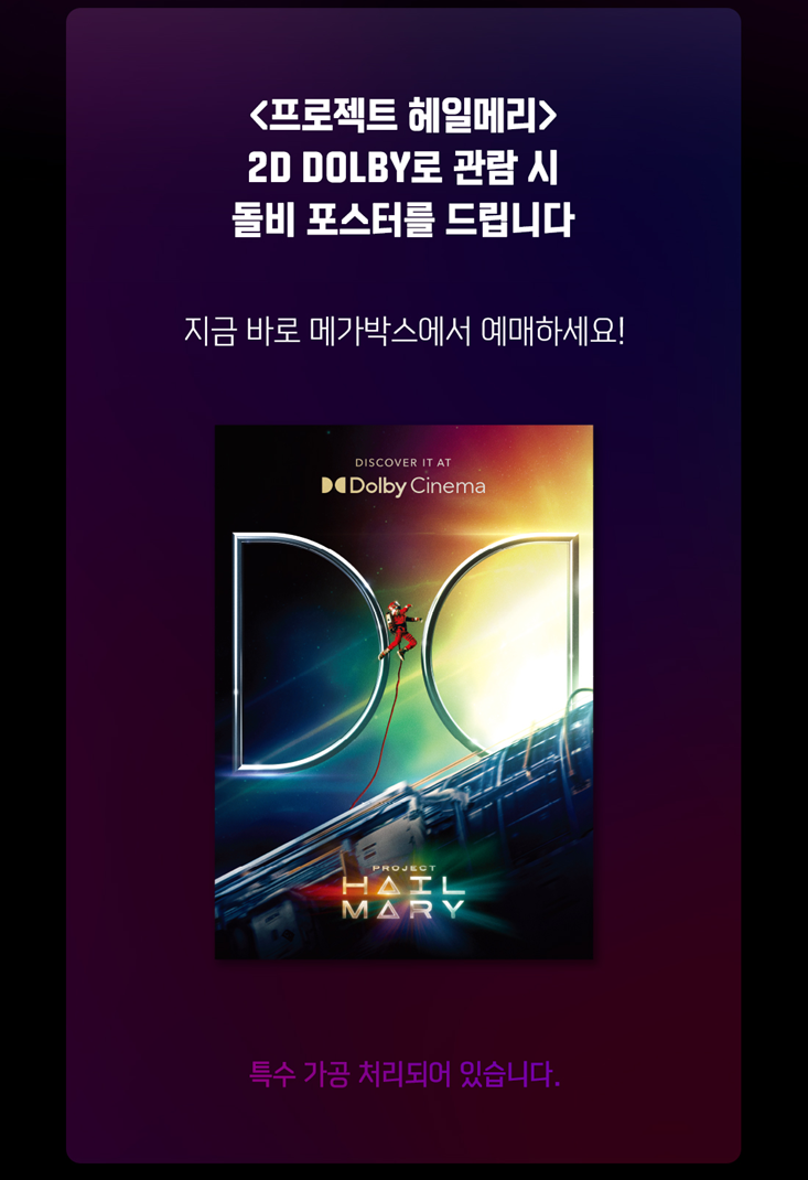 메가박스 2D DOLBY 특전은 '돌비 포스터'입니다. 특수 가공 처리가 적용되어 있습니다.