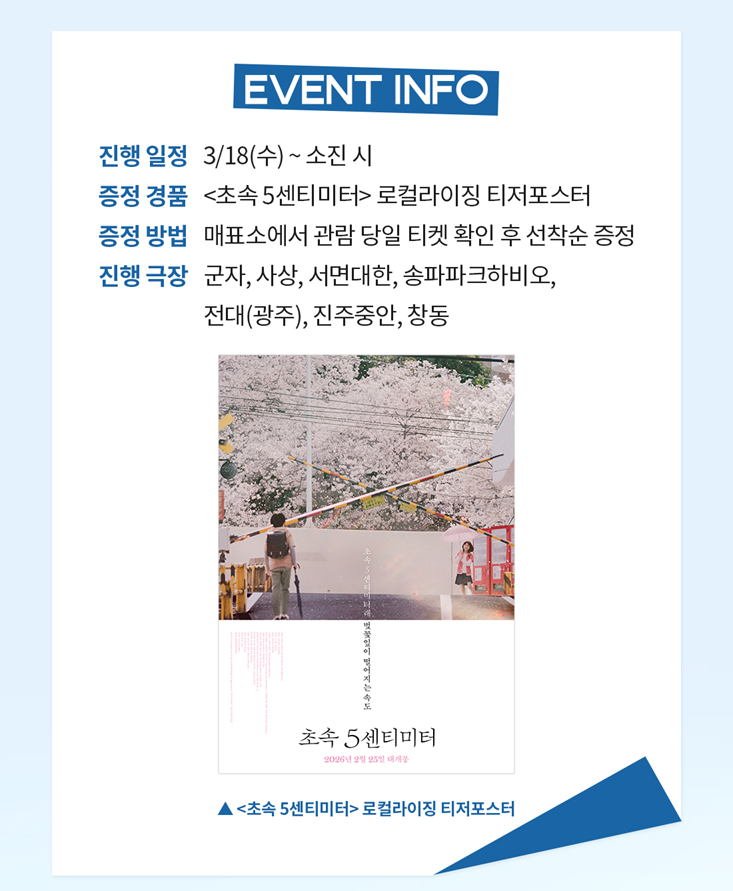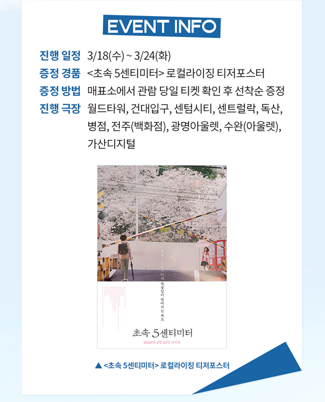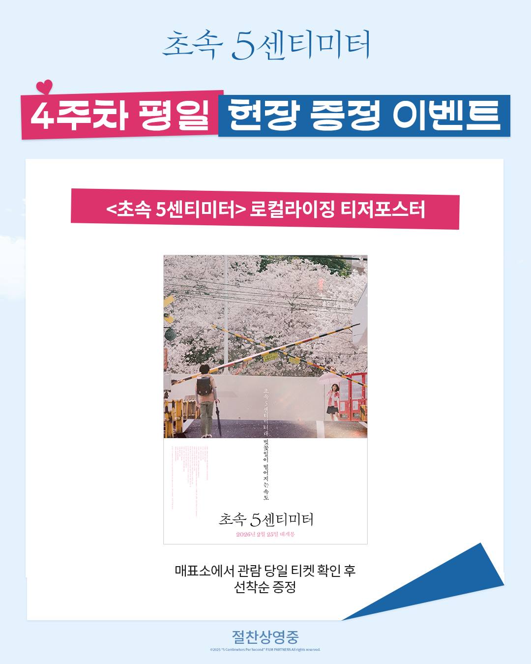 [실사 영화 <초속 5센티미터> 4주 차 평일 특전 목록]