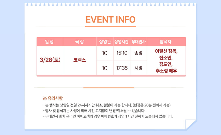 영화 <열여덟 청춘> 1주 차 주말 무대인사 일정