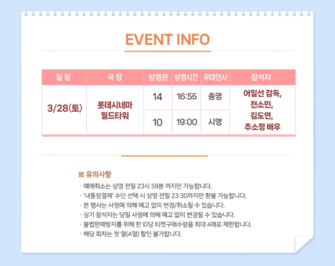 롯데시네마 개봉주 주말 무대인사 - 28일(토) 월드타워