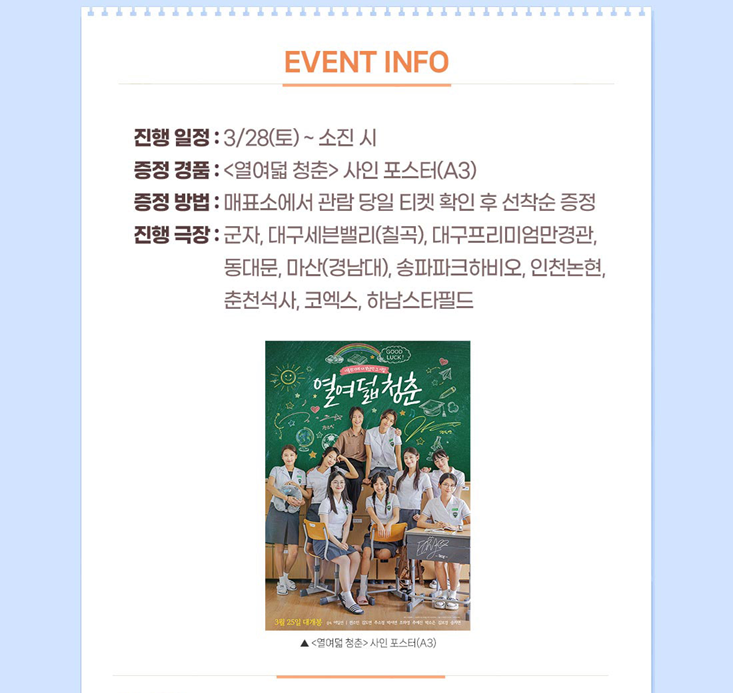 영화 <열여덟 청춘> 1주 차 주말 특전 목록