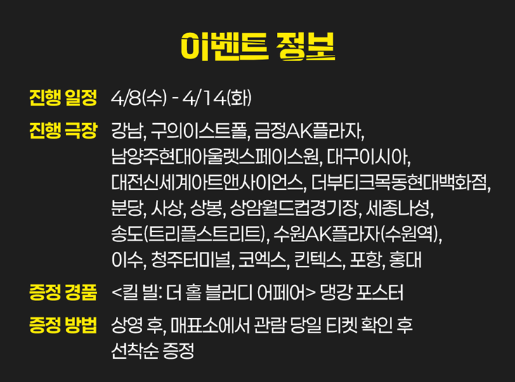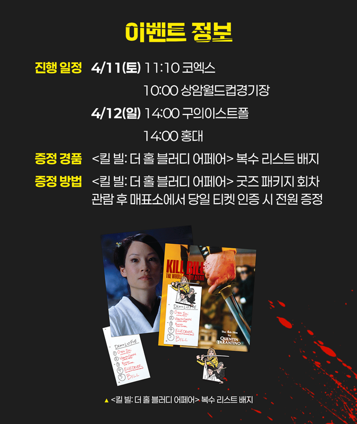 [메가박스 단독 개봉 영화 <킬 빌: 더 홀 블러디 어페어> 2주 차 주중 특전 목록]