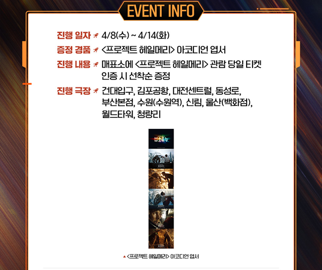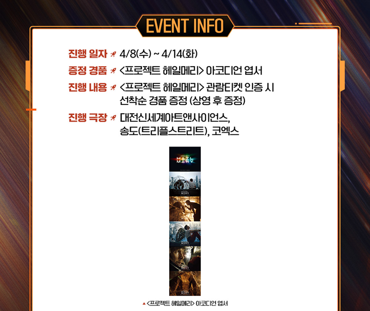 영화 <프로젝트 헤일메리> 4주 차 주중 특전 목록