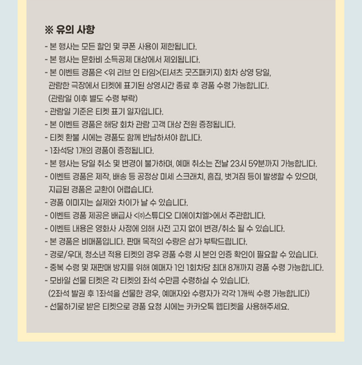에서 진행됩니다. 모든 할인 및 쿠폰 사용이 불가하며, 문화비 소득공제 대상에서도 제외됩니다. 전원 증정입니다.