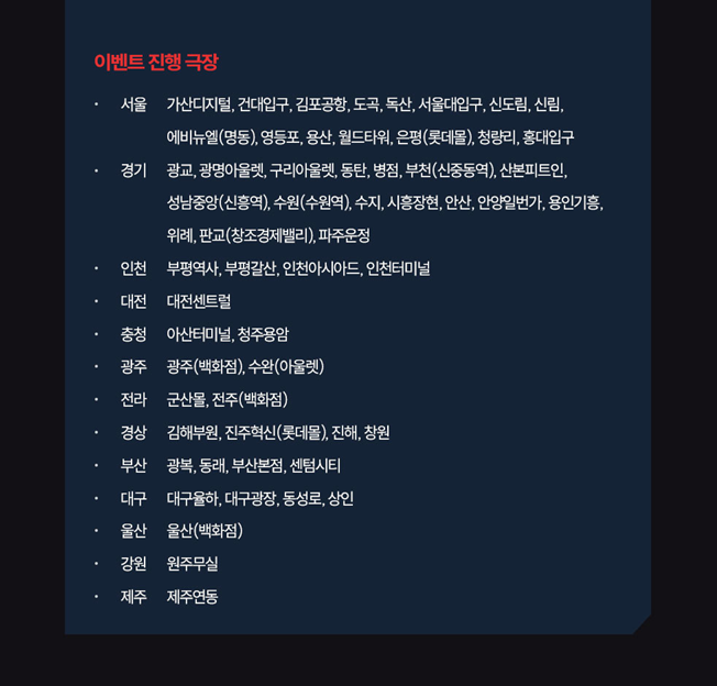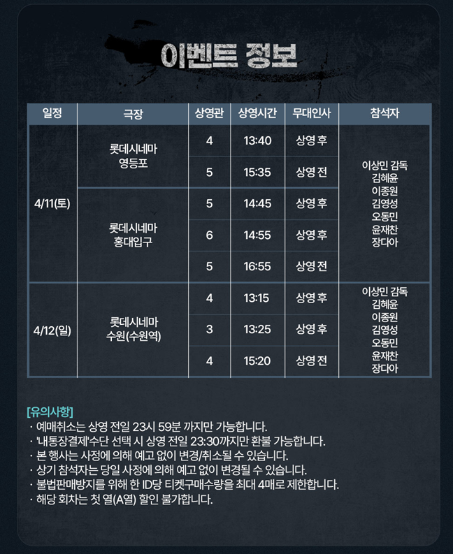 롯데시네마 개봉주 무대인사 - 11일(토) 영등포, 홍대입구 / 12일(일) 수원(수원역)
